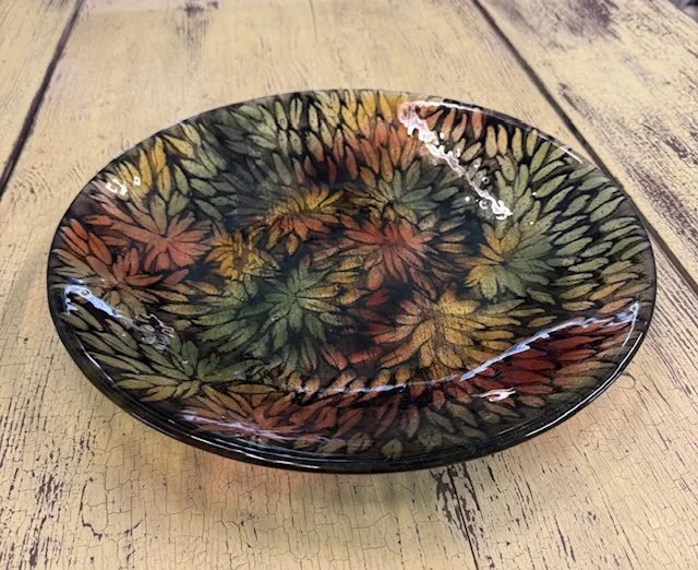 There is nothing in the world like Kiln Art. Every piece is 100 percent glass—no paint or glazes. Every piece of is food- and dishwasher-safe. Sharon and Paul guarantee that whatever you choose, from a 10-inch-square plate to a 24-inch-wide bowl, and anything in between, your piece will be like no other.