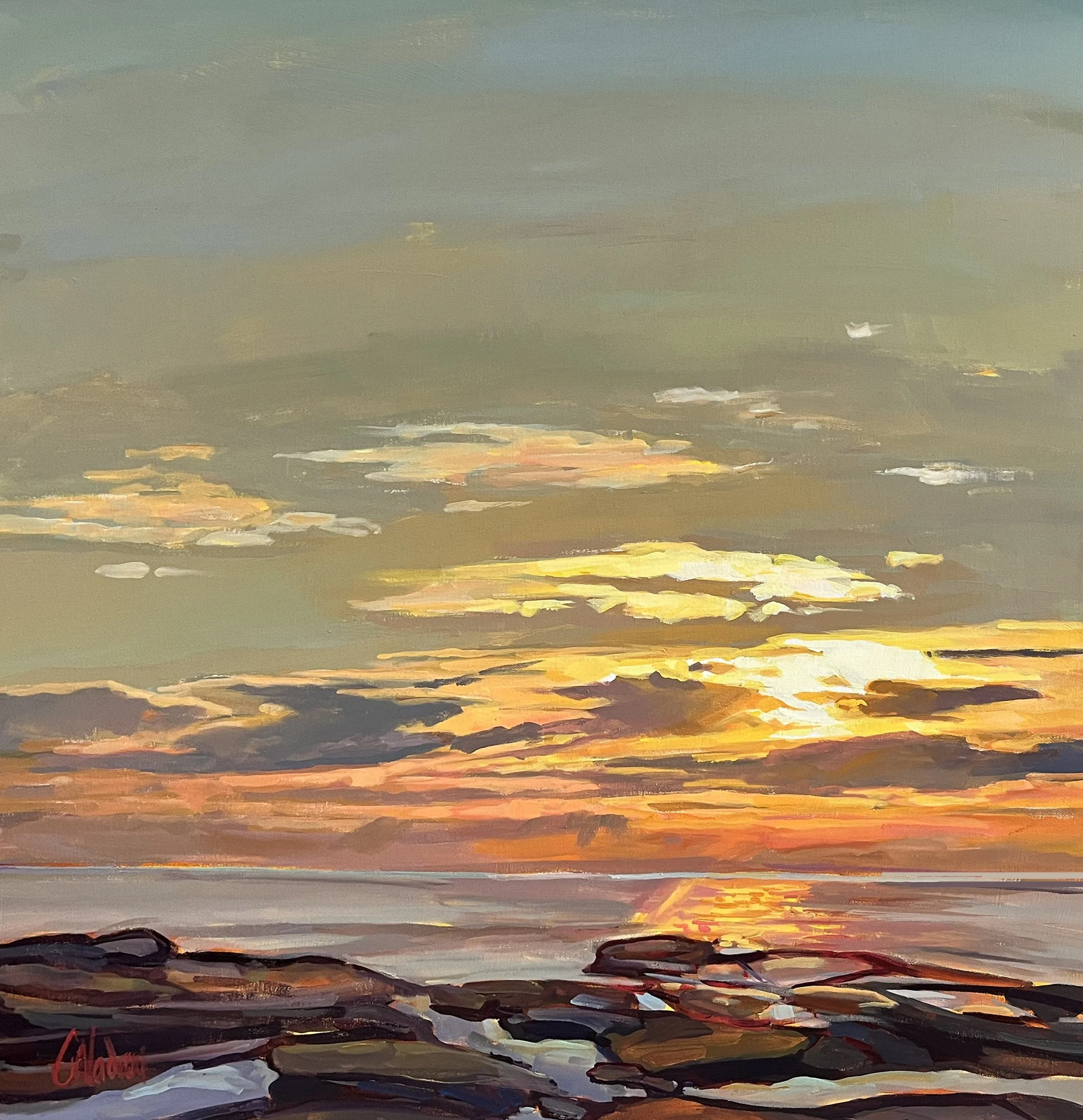 Christine’s approach is based alternatively on passion and structure. Her art is characterized by a profusion of broad brushstrokes that exist side by side and get organized in a final structure. Her work, like a mosaic, reaches its conclusion at the very final stage and is best appreciated from a distance. Her acrylic work is characterized by a warm color palette and strong contrasts. Her training in visual art and in psychology brings rigor and sensitivity to her favourite subjects: nature, maritime landscapes, and life in relation with nature.